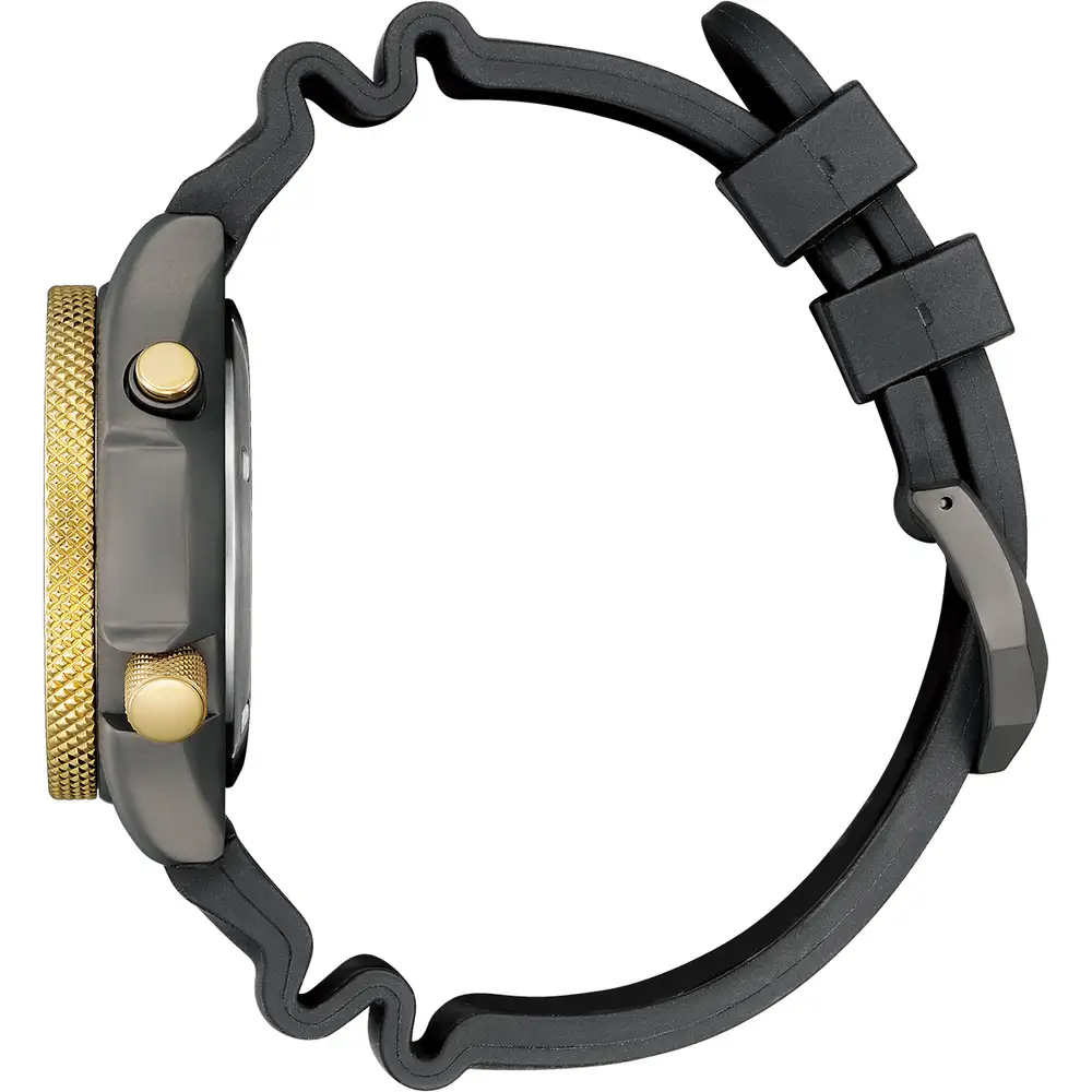 In 1985, Citizen launched the world’s first diver’s watch equipped with an electronic depth meter, called the “Aqualand.” This year, marking the 40th anniversary of its release, we are now introducing a limited-edition model that is a faithful yet contemporary tribute to the original design. The crown at the 4 o’clock position, three push buttons, and the distinctive bulbous depth sensor at the 9 o’clock position replicate the shape of the original model. The case features a grey matte brushed finish, while gold accents give it a special appearance befitting a 40th anniversary model. In addition to displaying the time, calendar, alarm, and chronograph functions, the digital display also allows for depth measurement and dive time tracking in dive mode. It is also equipped with an ascent rate alarm function that sounds a warning when the ascent speed exceeds a certain limit. The strap is made of BENEBiOLâ„¢, a plant-based polyurethane. The case back is engraved with a logo inspired by the iconic shape of the sensor to celebrate this momentous occasion. Limited to 5,800 pieces worldwide.